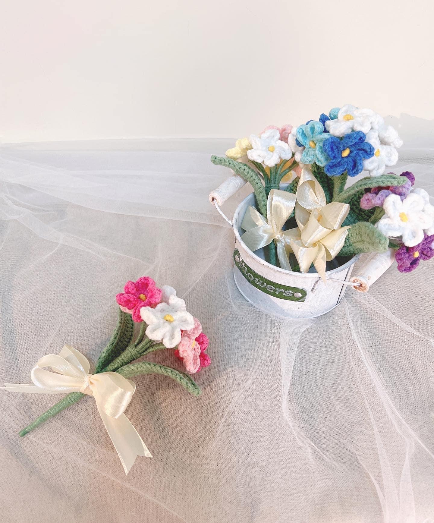 7朵勿忘我組成的小花束,花名「勿忘我」本身就是花語:「就算時間沖刷一切,也請不要忘記我。」