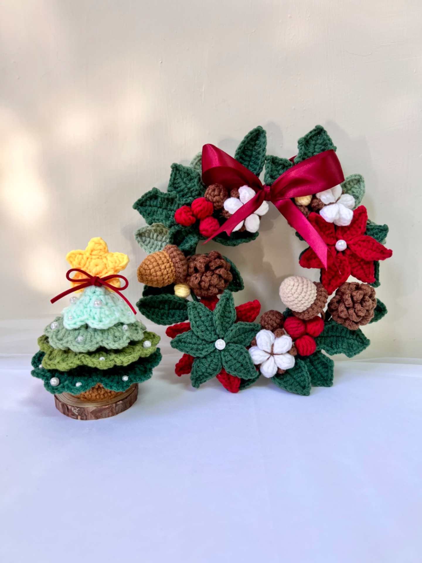 全針織有溫度的聖誕花環,把冬日溫暖的元素串在一起,省掉多餘的裝飾,簡單就很美。