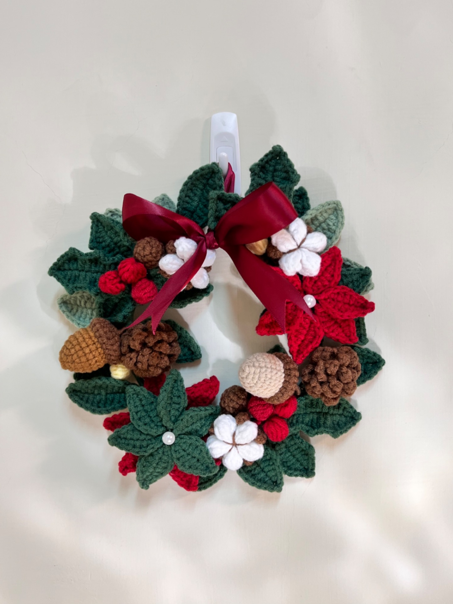 全針織有溫度的聖誕花環,把冬日溫暖的元素串在一起,省掉多餘的裝飾,簡單就很美。