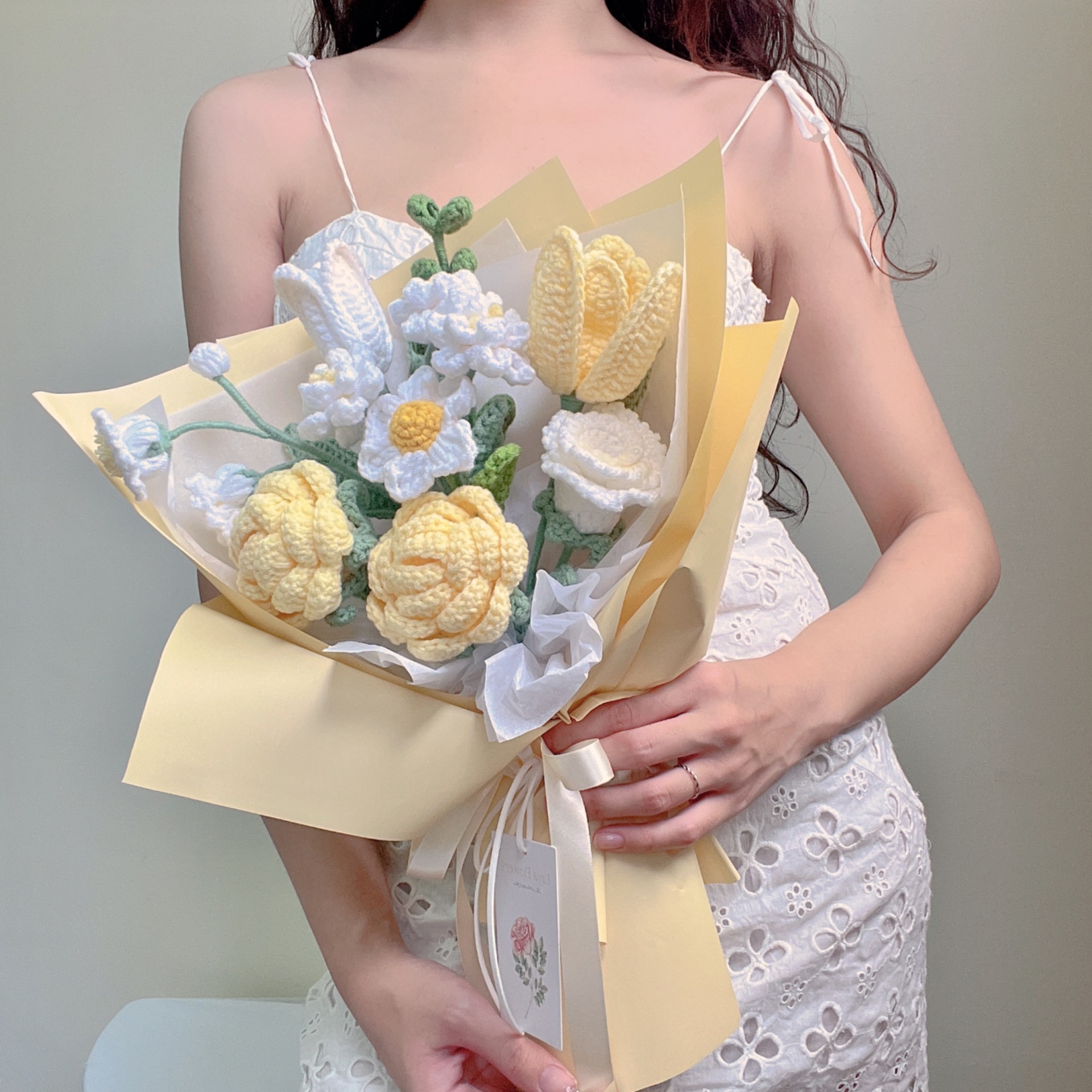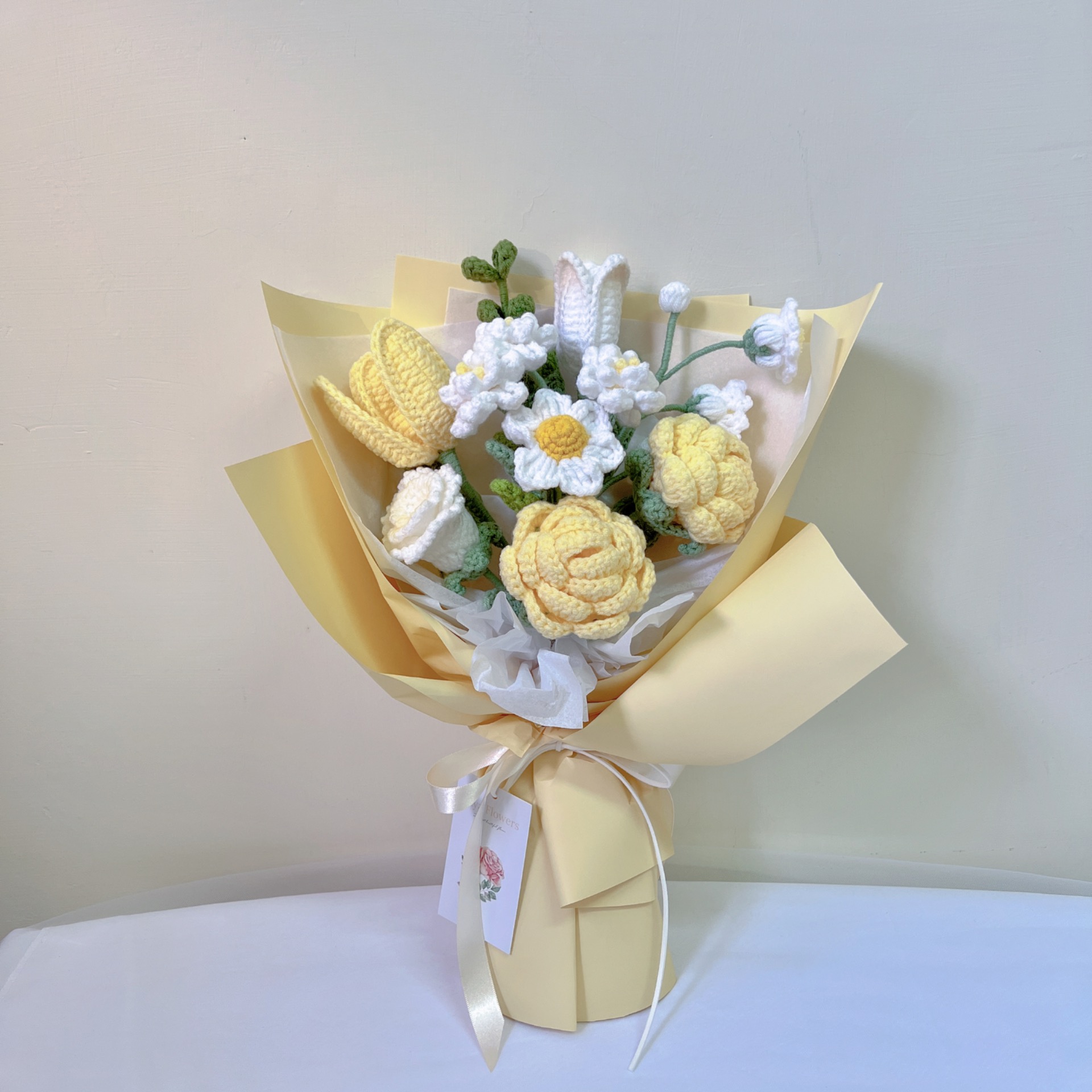做為蕭邦夜曲最明亮的一首,選用了嫩黃與寶寶藍,但樂曲裡還是帶著一絲蕭邦特有的憂鬱風,沒有大鳴大放的花朵,使用浪漫的玫瑰還有雲朵一樣的梔子花,再加點鬱金香還有招牌鈴蘭,最後加一枝尤加利點綴,適合音樂會花束、節日花束。