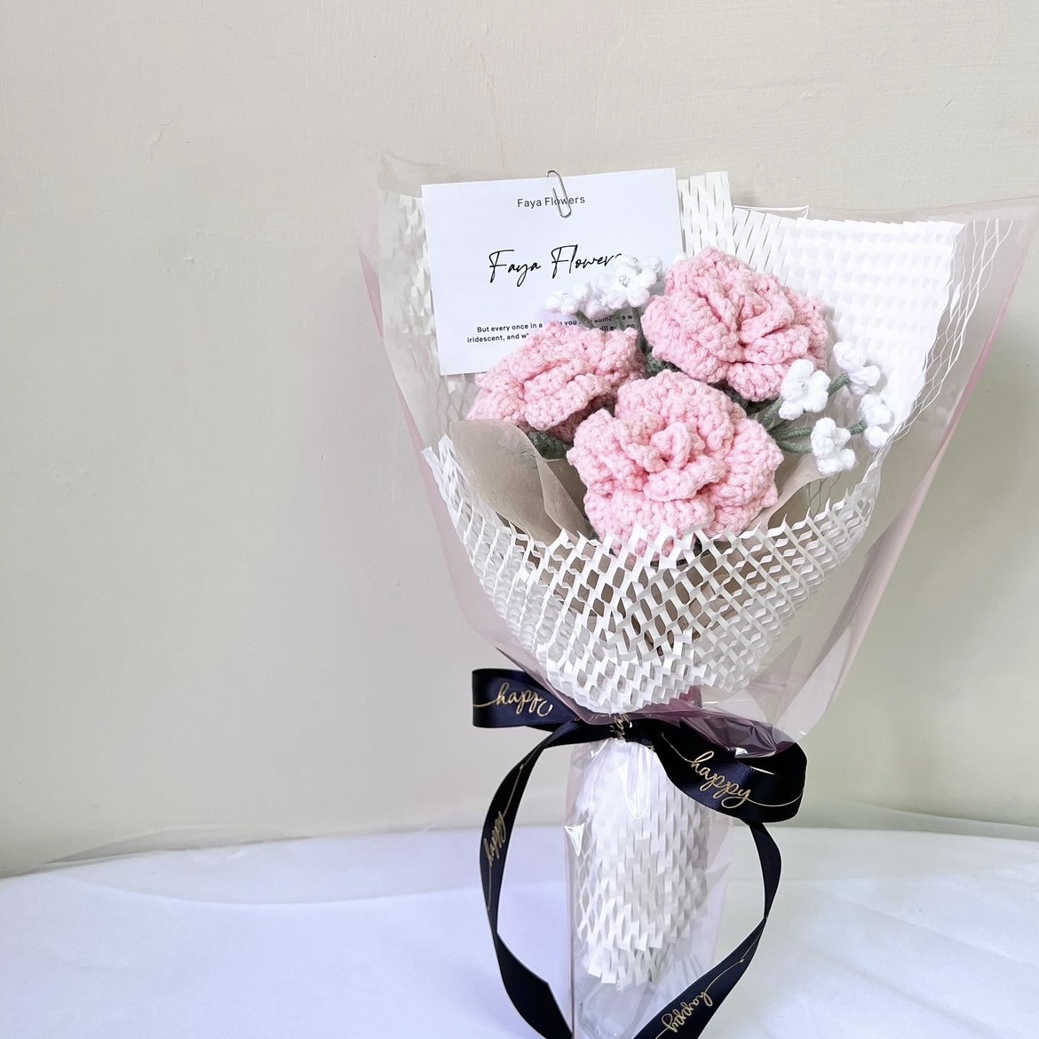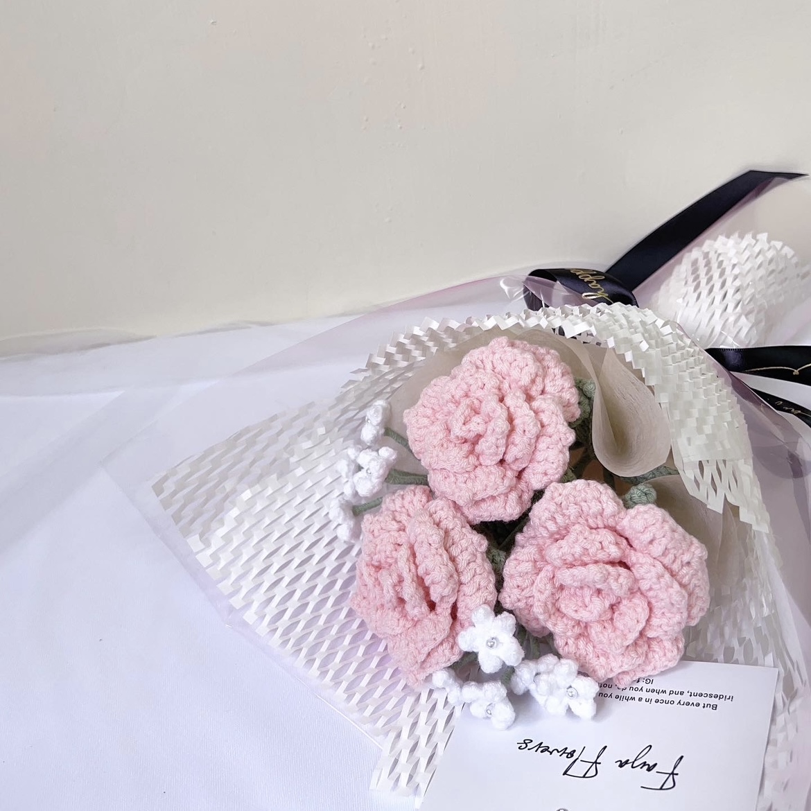 三朵粉玫搭配滿天星點綴,適合日常送禮花束。